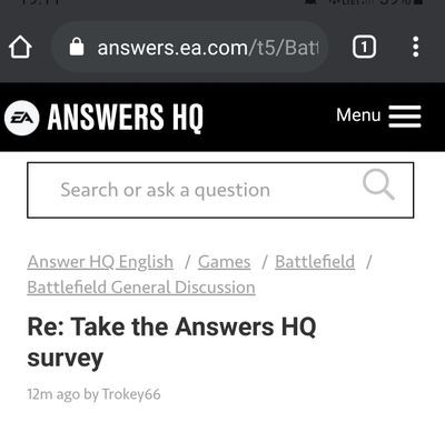 @Trokey66Hey good to see you. That survey is quite old and specific to AHQ's original technical support mission since BF3. AHQ will continue to evolve to accommodate the discussion and community building that the old BF forums covered.A survey from BF3 days? Say no more.