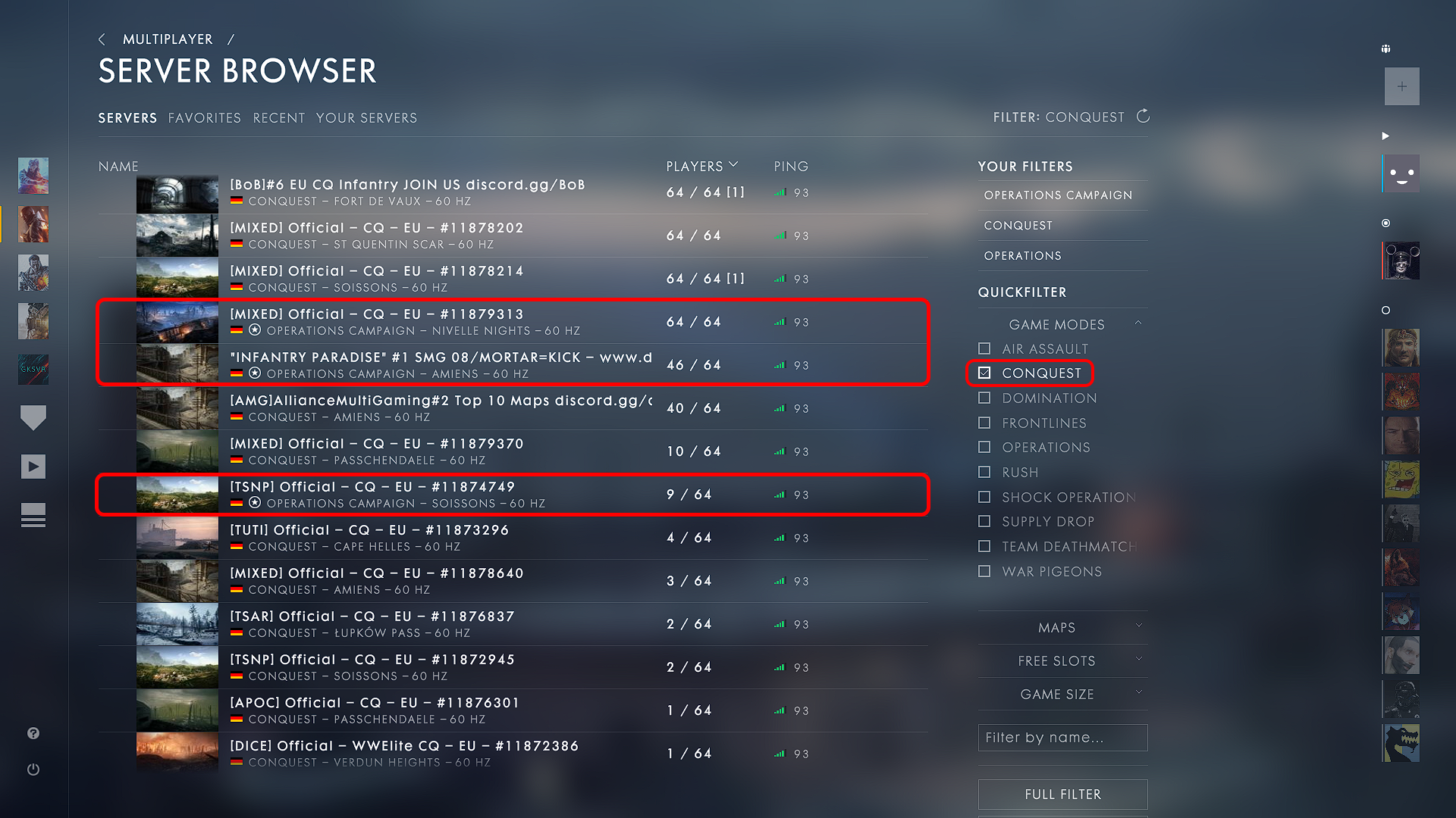 @EA_Leeuw, I can confirm that official servers will not switch between game modes (only switching between maps) unless it's a private server (the owner can change the server configuration at anytime). If you look at the provided picture earlier, I selected only Conquest servers and there are 2 official servers categorized as Operations which isn't true.