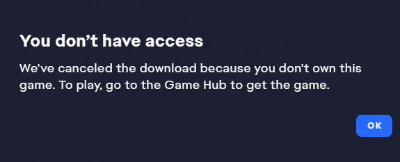 Going into the Game Hub doesn't give me the opportunity to get the game.