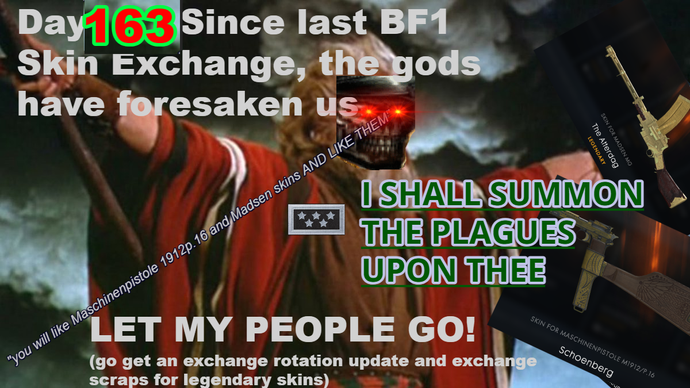 I may be wrong. but theoretically, last year, and a few other years before, EA/DICE goes on "Christmas Holiday" for about a Month and a Half (Nov.-Dec. 31st). So I am definitely thinking that if we do get an exchange rotation next week, it'll most likely not rotate again until Januar of 2026. Or, if we even get an exchange update, it will be in 2026, maybe in Januar, hopefully.
