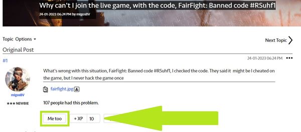 Why can't I join the live game, with the code, FairFight: Banned code #RSuhf1