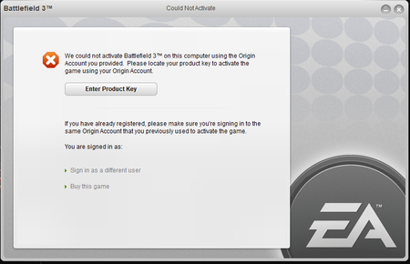 Battlefield 3 no se ejecuta, muestra error de código de activación