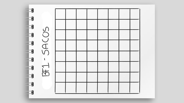Ahora vamos por las columnas, dibuja otro cuadro de 8x8 en tu libreta, puedes ocupar el cuadro de los sacos pero te recomiendo hacer otro.