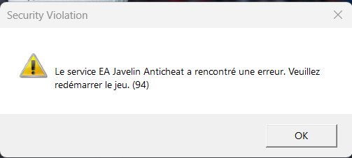 EA javelin anticheat encoutered an error (94)