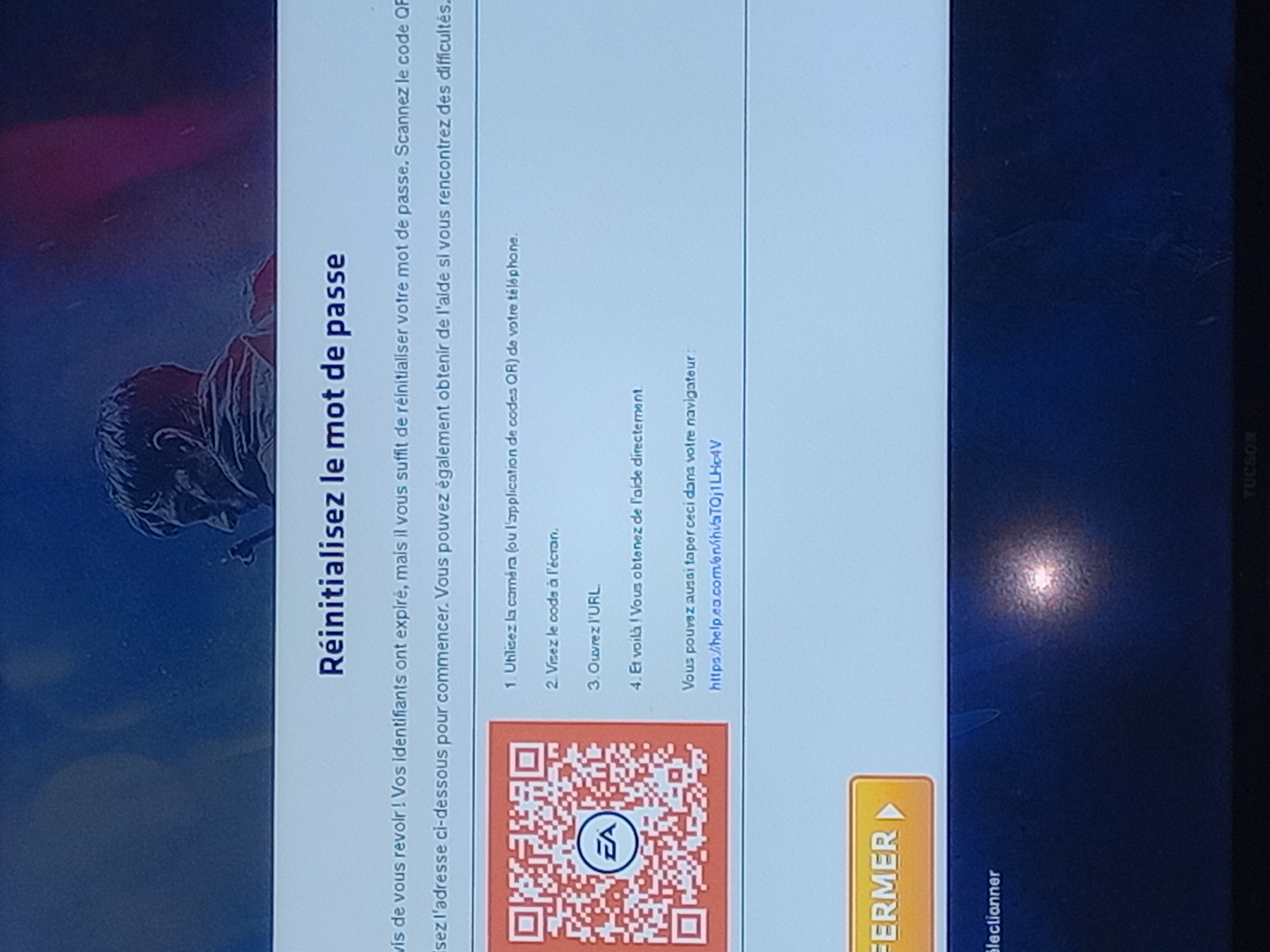 Tu peux contacter l'Assistance EA par chat/réception d'un appel téléphonique afin qu'ils te viennent en cliquant sur ce lien puis Encore besoin d'aide - CHAT/RECEVOIR UN APPEL (téléphone).