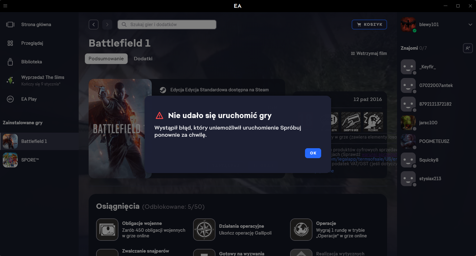 bf1 mi nie działa, ( każda gra kupiona na steam do której potrzebne jest Ea nie działa) gry kupione tylko w Ea mi działają wie ktoś jak to naprawić?