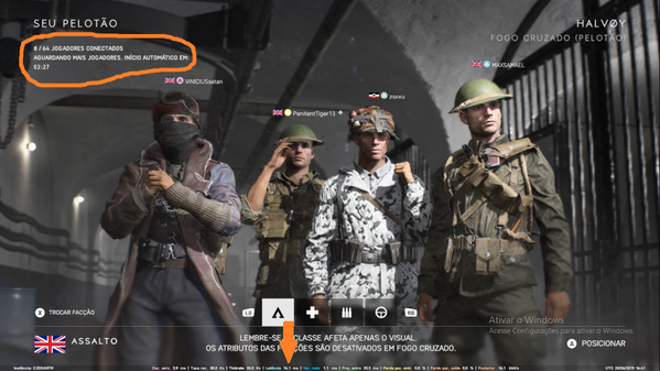 Em 1% das vezes que tentamos entra em uma partida, entra no servidor da América do Sul com somente 8 jogadores e não entra mais nenhum jogador, mesmo nós sabendo que tem outros amigos tentando encontrar uma partida naquele momento. Obs. a seta vermelha indicada na imagem mostra que estou no servidor da minha região, pelo valor baixo da latência.