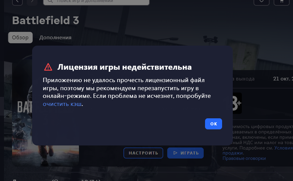Такая же проблема нарисовалась, играл с 2011 года все было норм, а тут после BF6 зашел в трешку и так же пишет, что лицензия недействительная