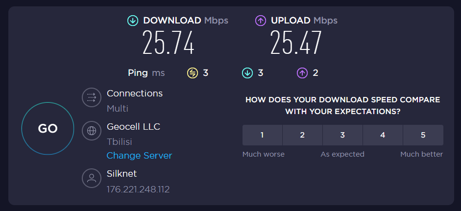 При этом ping 60, скорость интернета 25 Mbit/sec