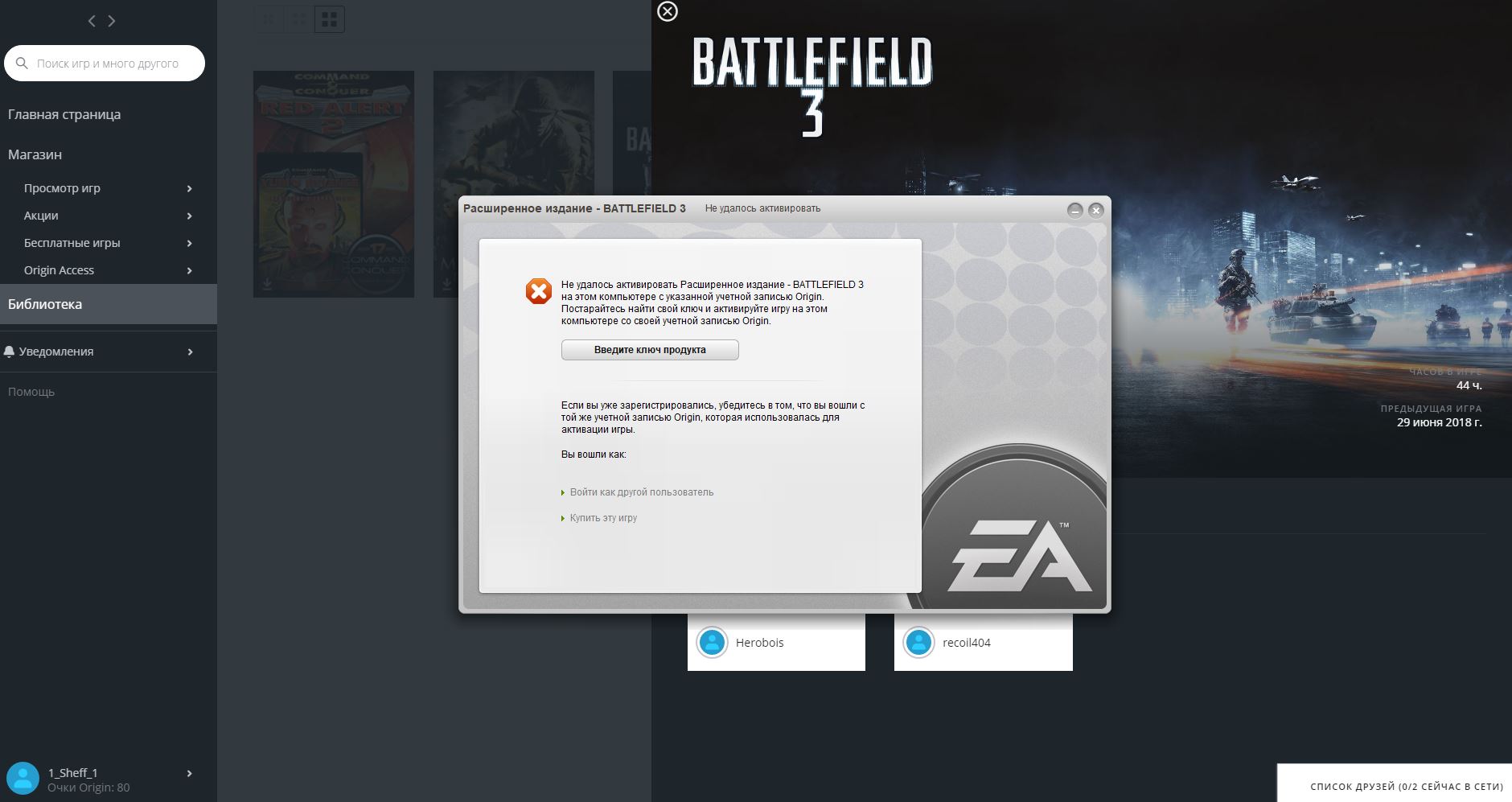 1_Sheff_17 years agoНе удалось активировать расширенное издание battlefield 3Проблема такая проявляется в последнее время в 100 % случаев. Переустановка клиента Origin с игрой не помогла. Все время выскакивает сообщение (скриншот прилагаю). Помогите решить. Снимок.JPG140 KBСнимок.JPG140 KBСнимок.JPG140 KB