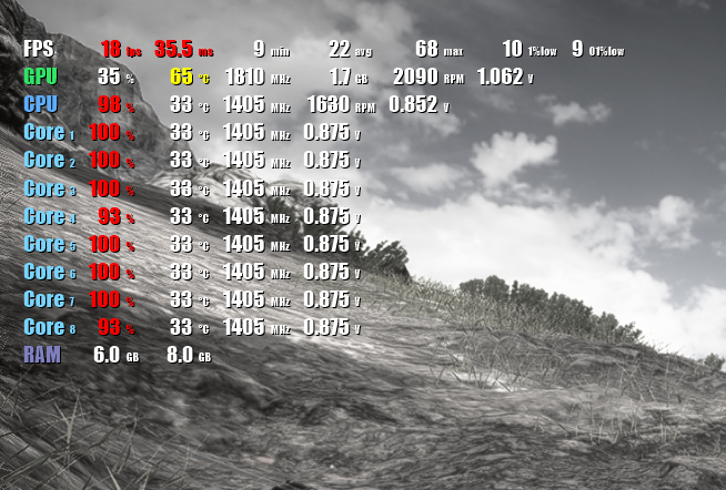 По FPS Monitor процессор загружен на 100%, видюха на 40-50.