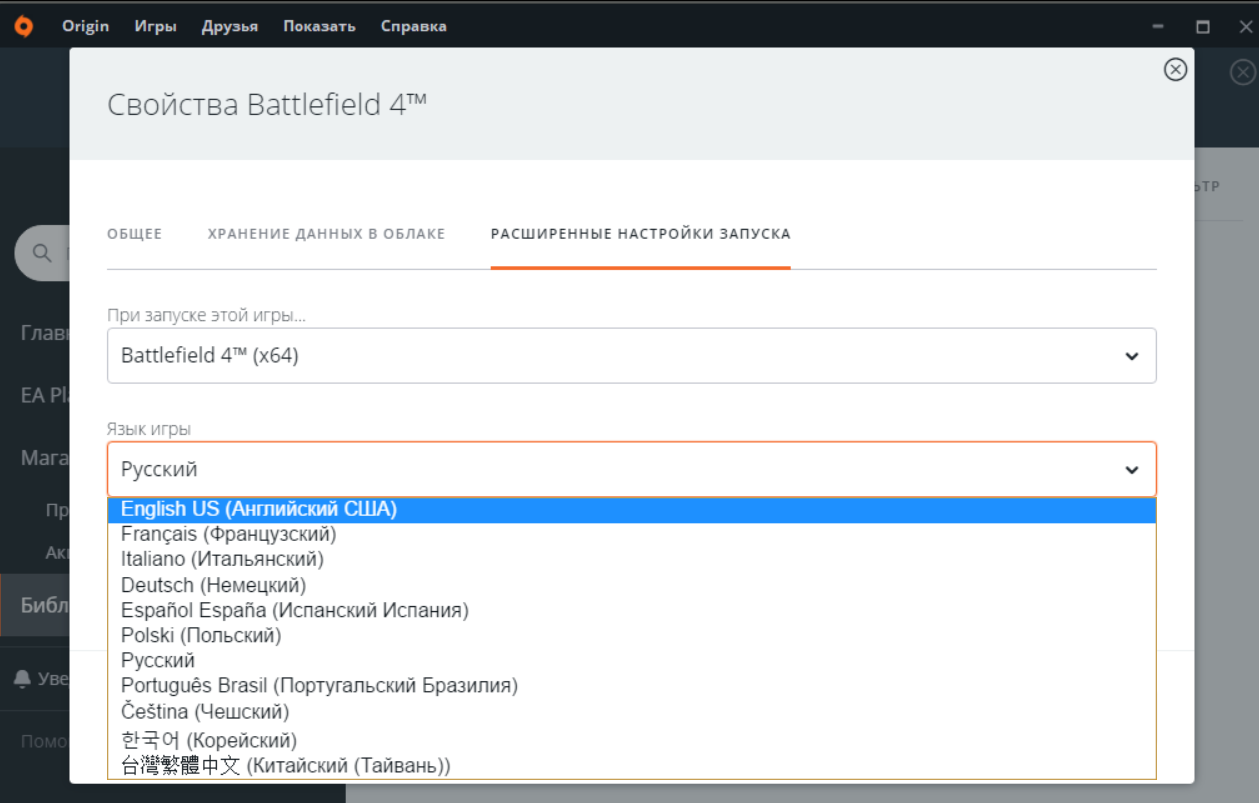 Купил Battlefield 4 премиум на ПК, есть только русский и польский язык, как поменять версию на английскую ? службы поддержки электронной, как я понял нет ?  Перед покупкой, я не увидел сообщения, что будет только русская и польская версия, было ли оно вообще ?
