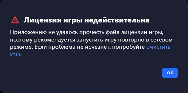 Данная ошибка появляется когда игра не может найти файл с лицензией в специальной папке. Он просто не скачивается.