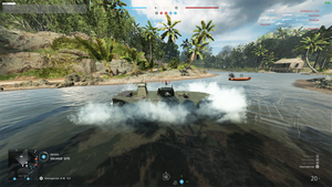This has been fixed, at least for the Ka-Mi. I'd imagine the same fix was applied to the LVT. Now we can see clearly in first person mode, while not making so many splashes that draw attention to the enemy.