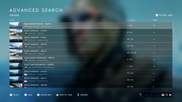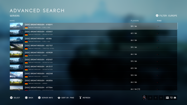 It has been 2 weeks since my last time I logged into my PS4 to have a game on BFV, I usually use advanced search to get in a game. After updating the game to V 1.21, it was weird for me to see all Europe servers signals in red, my latency used to be 80-86ms maximum to Europe servers, and North America servers were in yellow, I tired to see if it's just something wrong with the graphic signs, I picked up a German server and the latency was 304ms! while in the North America servers it was 159ms almost 1 ms away from getting "the lead bullet sign", why I say it's weird? because according to the place where I'm living now, Saudi Arabia/Middle East, the European servers for me is more close than the North America ones .. my latency to NA servers usually around 180ms and up ..