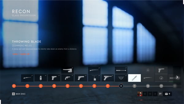 Summarize your bug The recon class progression shows that you unlock the throwing knives at class level 9. However, I already have the throwing knives unlocked since very early on, since even before the smoke grenade. Yet, the throw knives appear after the smoke grenade. Anyway, to be sure of when the throwing knives actually get unlocked, I would check all recon levels from level 1 through 8.