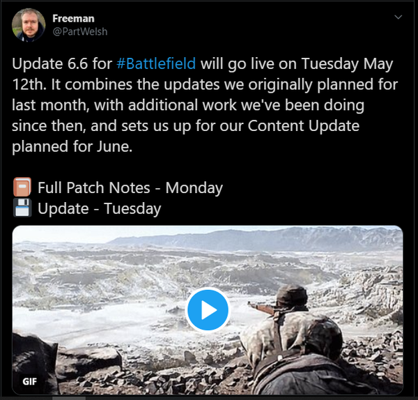 Our next update for Battlefield V is targeted for release in June, and delivers all new content for the game. You can read more about the future of Battlefield V here.