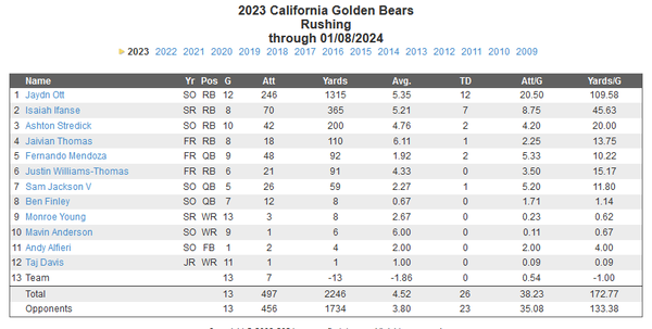 This is Cal's rushing game breakdown