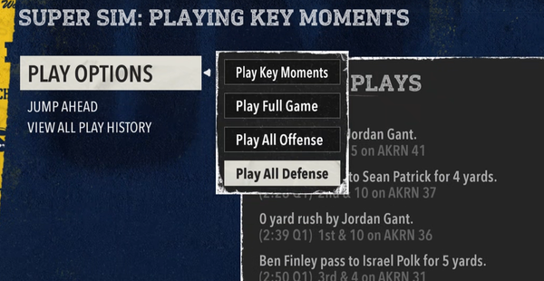 UtahUtes32Seasoned Ace2 months agoPlaying Key Moments: Give us an option to skip special teamsLet us play defense without playing punt return/FG blocks.