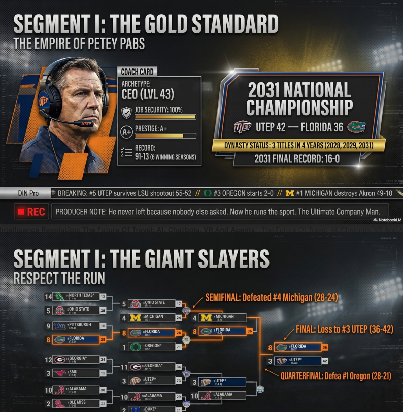 - Narrative Arcs: It remembers UTEP’s 2031 Championship win and tracks the transition into the SEC.