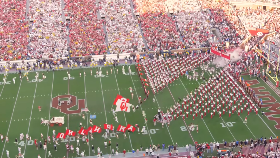 Presentation needs A-L-O-T of work. I'm focusing in on Oklahoma as that is my preferred school but it needs work across the board.. OU TD celebrations at night need to include the lights going on and off like they do at LSU Alabama Ole Miss and others. If you can put tortillas in the crowd for Texas Tech, you can have cheerleaders, or at the very minimum, Boomer (mascot) making an O and a U with their arms for OU. If NMSU, BC, KSU, Notre Dame, and other schools can get a pregame band formation at midfield, then why cant OU get the same as their band also does a midfield school logo formation. (See attachment 1213918) You updated field graphics so why do you have OU using the same endzone art for conference and non-con games when IRL the endzone art is different (see attachments 124601 and 124543). Why cant we choose which games to stripe our stadium for? And where are the "Boomer" and "Sooner" crowd chants? And the "authentic experience" argument is moot because I have never seen OU horizontally stripe the stadium, but you made sure to add it in the game. .Now to pan out to the rest of the game. Why cant we delete coach profiles from the trophy room when they are no longer active? I have 6 coaches who were created simply for testing purposes and now they are all just there permanently and they are eyesores. Are Mr Brightside, Welcome to the Jungle and Enter Sandman the only songs you have rights to? If so, why? This game is a multi-billion-dollar game. I think you can get the rights to a few more songs. Oh, and why aren't those songs available on the tracklist at the main menu? Why do you only have 16 school fight songs available? Why not make all the songs available? Or at least the big ones like the three i just listed. The songs you currently have are some of the most unpopular and little-used school songs in the game. Come on EA, you can do better than this. And you don't need to wait until next year's game. You have already showed that you can update Mascots, field art, chants and music, so there is nothing discussed here you cant fix in the next title update. This is an across-the-board area that is being neglected so bad its almost criminal.