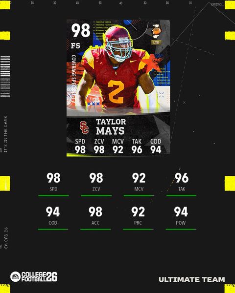 Recent DiscussionsRanked ending early I was saving my ranked packs for Sunday but instead they have been reset and then removed. idiots Ultimate Team Player Gone From Roster I acquired a 96 OVR LG Beau Stephens from the Auction about 10 days ago and had him as my starting LG ever since. That was until yesterday when all of a sudden he was no longer on my team anywhere, h...Top Ten Strongest Defensive Line Clocking in for DL workouts today! Which one of these D-linemen gets drafted first? College Football 26 Season Six Stars Season Six rolls on with Jalon Daniels and Simeon Harris! Volume 5 arrives in College Football 26 later today! College Football Rewind Vol. 11 Take a trip down memory lane with Taylor Mays, Aaron Taylor and Geno Atkins in Rewind Vol. 11!