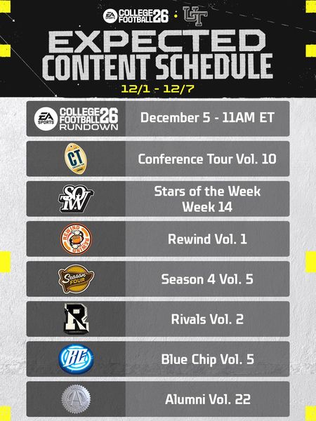 NatureBoy2323Hero+27 days agoExpected Content Schedule for College Ultimate TeamFor the Week of 12-1 - 12- 7