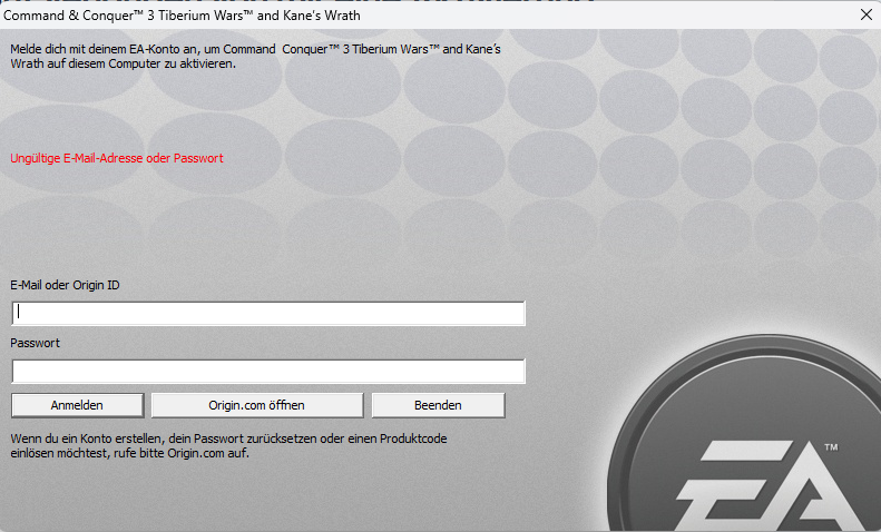 C&C 3 Tiberium Wars verlangt von mir eine Aktivierung