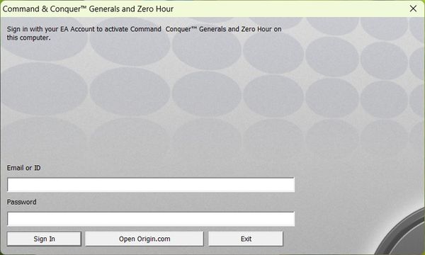 CnC Generals asking to sign in to EA account