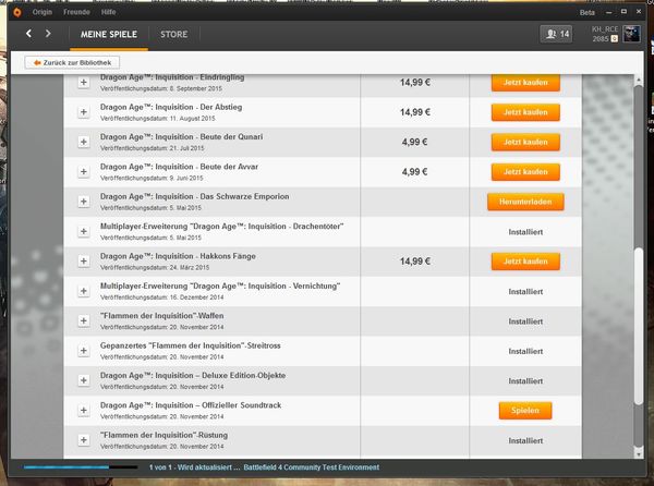 Ich habe mir mehrere DLC für Dragon Age Inquisition gekauft. Habe sie aber nicht im Spiel erhalten. Des weiteren kann ich mich mit Origin verbinden, aber wenn ich im Spiel auf Anmelden klicke kommt die Meldung Die Server sind zurzeit nicht zu erreichen. Bitte Versuchen Sie es später erneut. Das Versuch ich jetzt aber schon ne ganze zeit lang.