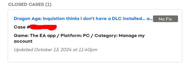 And on a side note, the EA support chat made a baldfaced lie to me, saying the bug was widespread. Nowhere have I seen the same issue. Not doing searches on EA, Twitter, or even Google searches. Then said the fix would be announced on social media. You know, just social media. Then closed my case with "No Fix" on it. Yeah. Sure.