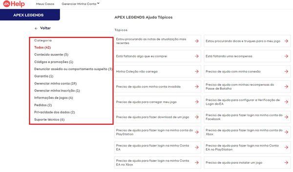 - Na página inicial da Ajuda da EA, selecione Suporte à conta.