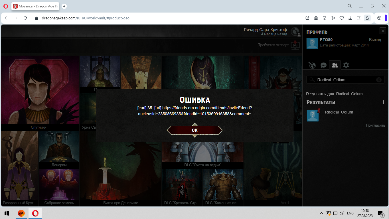 - @FTO80 В EA App тоже ошибка? Проверьте. Если да, то только ждать когда починят, самим тут ничего не сделать.