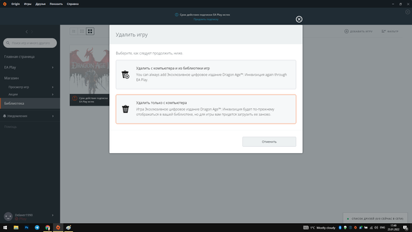 Только сейчас появилась возможность проверить варианты. При попытке удаления игры из библиотеки выпадает вот такое окно, без возможности восстановления.
