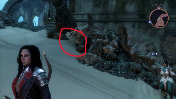 -No. Don't feel like there is a need, it looks like a misplaced piece of geometry/environment asset piece. Not a game breaker.