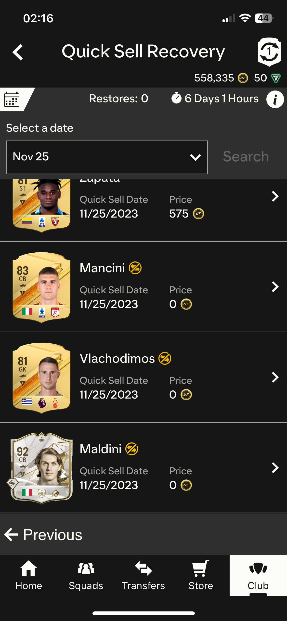 Hi ich habe aus Versehen Maldini abgestossen als ich ihn gezogen habe. Gibt es irgendwelche Wege ihn wiederherzustellen? Ich habe keine weiteren Wiederherstellungsmöglichkeiten
