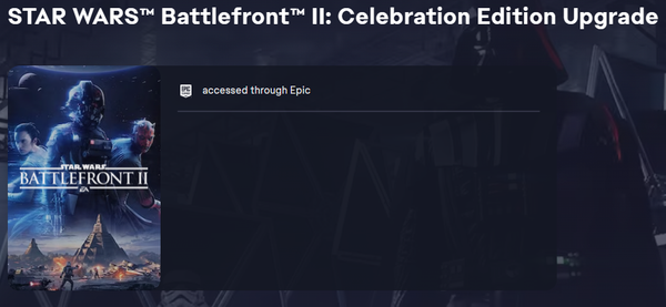 Interesting, it seems the EPIC Games version has reverted its artwork back to the EA app version. EA App identifies the standard edition which is the EA app base version, and then identifies the Epic Games Store version which is the Celebration Edition as an addon upgrade. It has somewhat combined the licences from both stores.