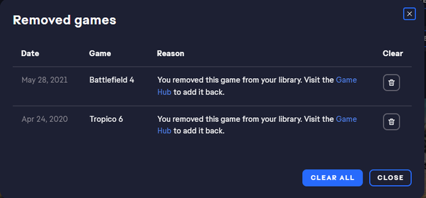 • For the message "Games have been removed from your library" in the EA app, click here.