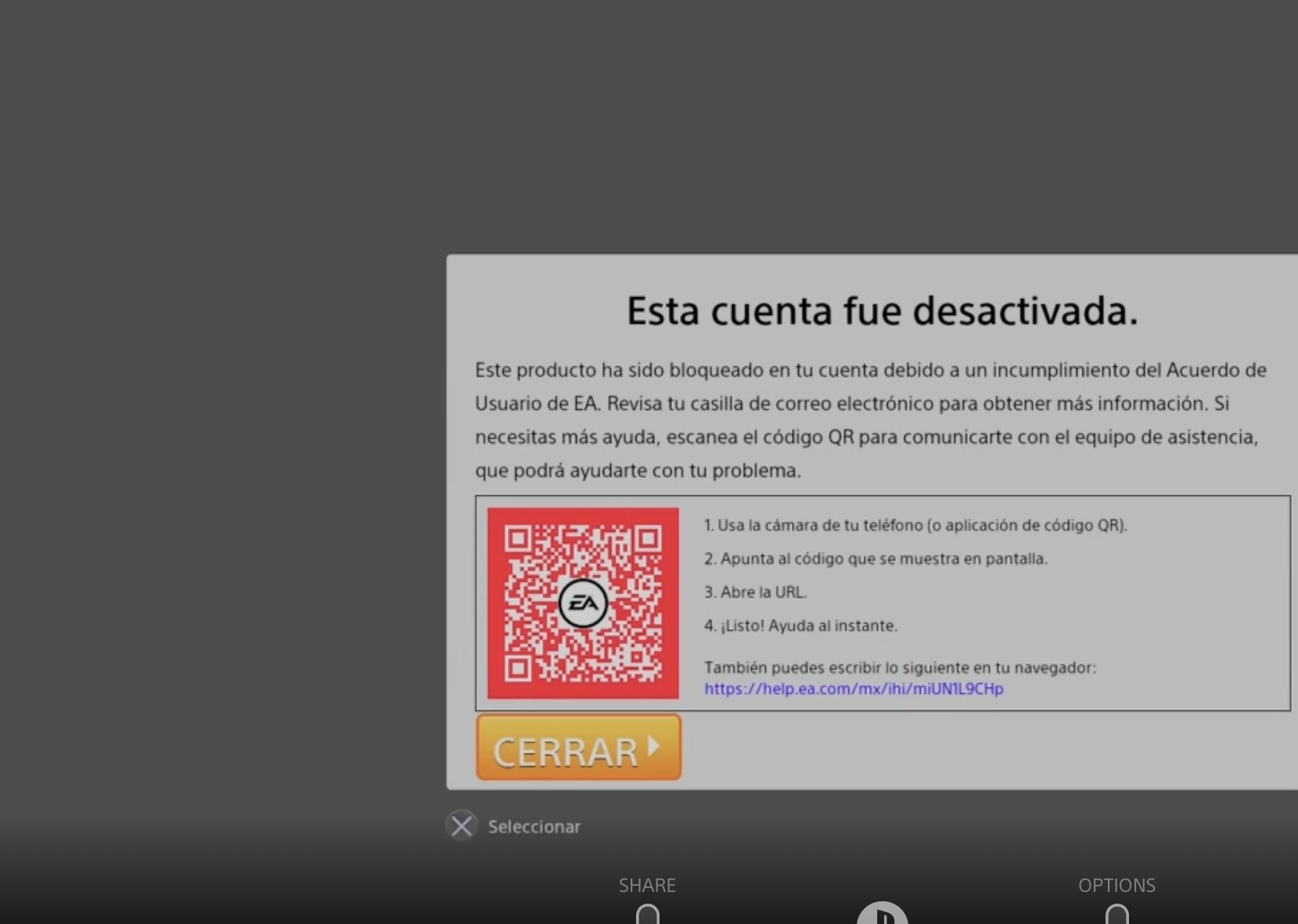 soy usuario de consola especificamente de play station el dia de ayer me salio un aviso de cuenta suspendida entre a ver el motivo tratando de iniciar a ea mediante la cuenta de play station y o sorpresa me sale que me llega el codigo de iniciar sesion aun codigo que nada. Que ver con el mio no se que me hicieron pero todo aparente a que me cambiaron el correo de mi cuenta y estan obvio por que ese correo no tiene ni sentido por ultimo dice .ru como si fuera de rusia y estan obvio un desastre por que juego Fc y batllefield seguido y ahora no puedo jugar el online y todo los cosméticos que compre que pasará