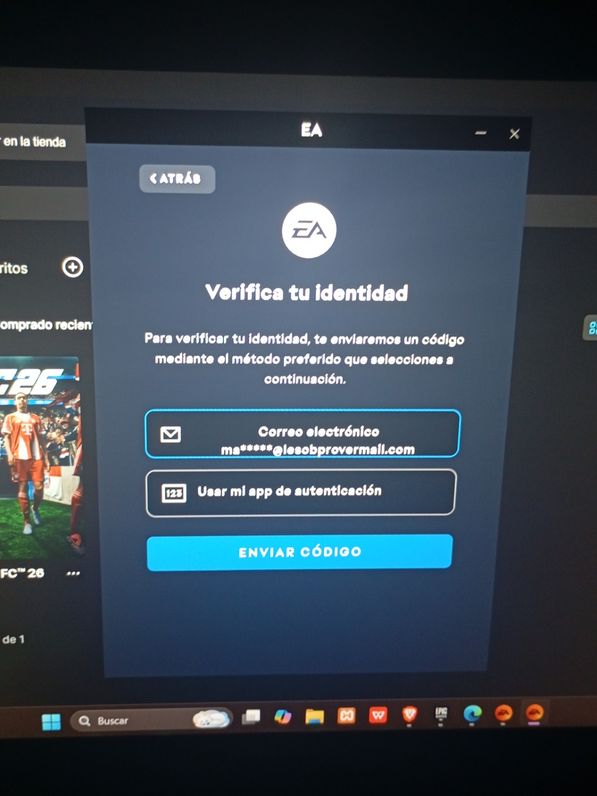 Hola buenas, ayer compre en epic games el FC 26, al ejecutarlo en epic se abre como lo normal el EA app, el caso es que cuando inicio me aparece lo que se ve en la imagen un correo que en mi ida habia visto y por supuesto se que no lo vincule a Epic para que me saliera este, no se como pueda saber si puedo desvincular este correo para realmente dejar el mio, estoy preocupado la verdad de perder alguna de mis dos cuentas.