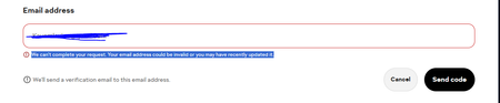 Minha conta foi hackeada e eu nao consigo mudar o endereço de email dela pois aparece o erro ''We can't complete your request. Your email address could be invalid or you may have recently updated it....