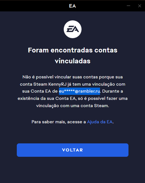 Estou passando por uma dificuldade na minha EA faz 1 ano tentando mudar senha, login, redefinir tudo até gmail mais nao consigo jogar nada pela steam, que tem vinculo com EA e outros apps, pois fui roubado e mudaram tudo que tinham que mudar tento logar na minha conta para jogar need for speed mais ja esta vinculada em outro gmail (em ingles eu*****@rambler.ru) sendo que o meu é mailto:[edit: email address removed] mais preciso de uma ajuda por favor com a remoção desse gmail!!!
