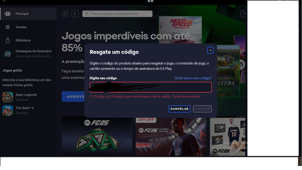 Acabei comprando R$400 em código e não estou conseguindo resgatar, nem no EA APP nem no site da EA. Alguém consegue me ajudar ? Nem para comprar o jogo nós conseguimos ter paz
