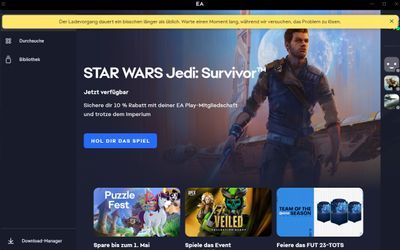 seit heute kommt beim Start von EA Play immer die Fehlermeldung "Der Ladevorgang dauert ein bisschen länger als üblich. Warte einen moment lang, während wir versuchen, das Problem zu lösen." Nur passiert da nix mehr...