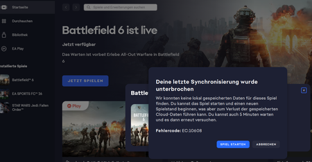 hab BF mal gestartet, der Fortschritt ist alles noch da. Sobald man das Spiel verlässt kommt dann die folgende Meldung: