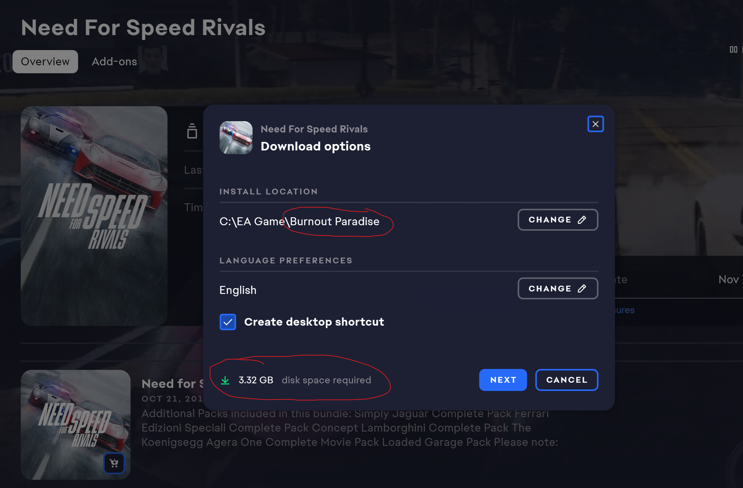 Regarding the issue, @Shuffheadshot, @falcon028, do you have this only with NFS Rivals, where the EA app installs NFS Burnout Paradise instead?