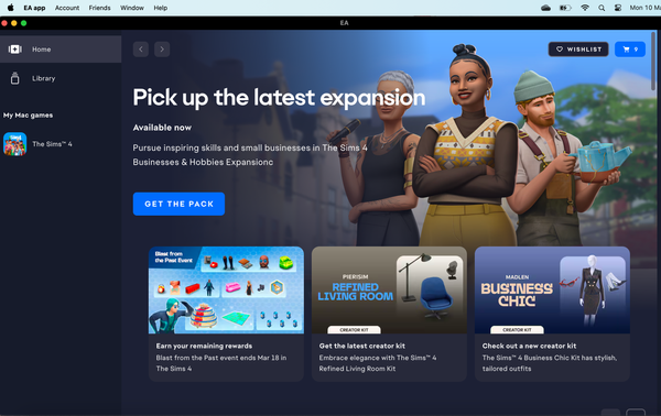 Hi, I've had an issue with my app for months now where I can't browse any unowned games (all I am able to see on my app is the Sims 4 + packs I own & ones I don't). As can be seen in the picture my only options are Home (which only shows Sims related things) and library (which shows only the Sims 4 as that's all I own.