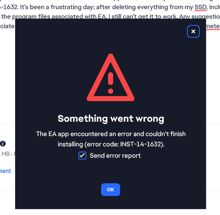 EA will no longer install in my computer after reinstall.