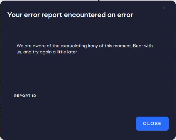 When attempting to report this error, the error reporting tool also displayed an error message: