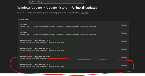 • Some Windows updates, especially KB5063878 and KB5064081, have been linked to game launch errors.